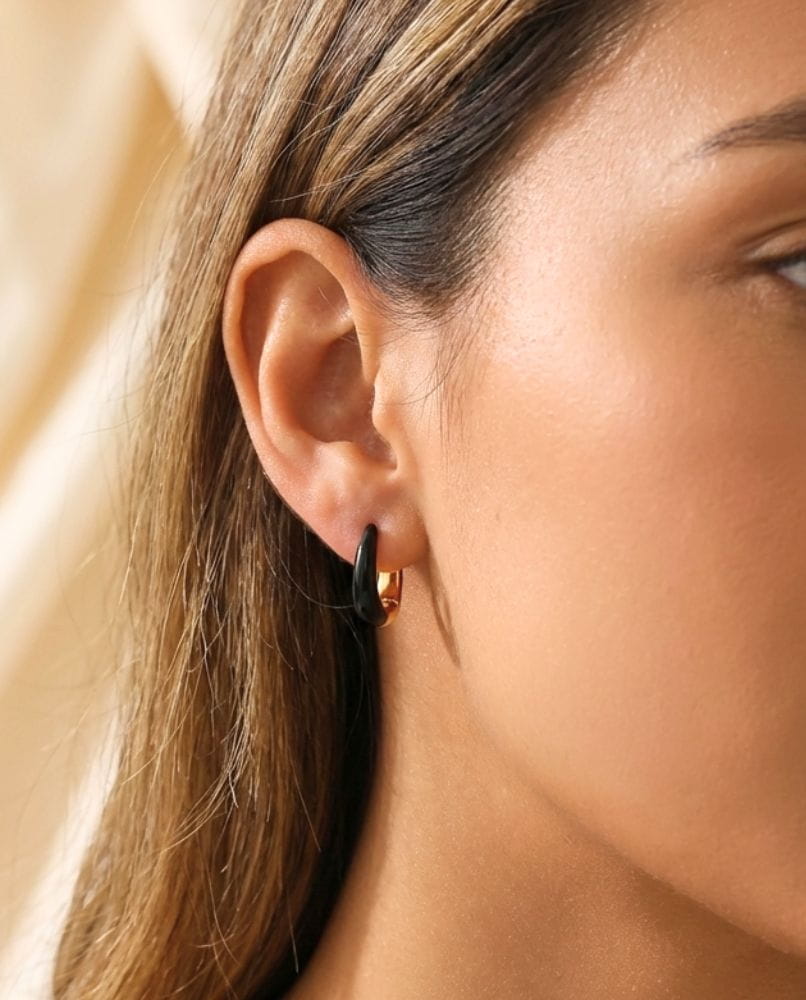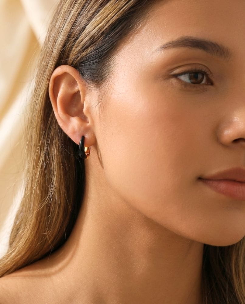 Jeden detal, dwa oblicza elegancji: Dwustronne kolczyki 18k Gold & Black Enamel