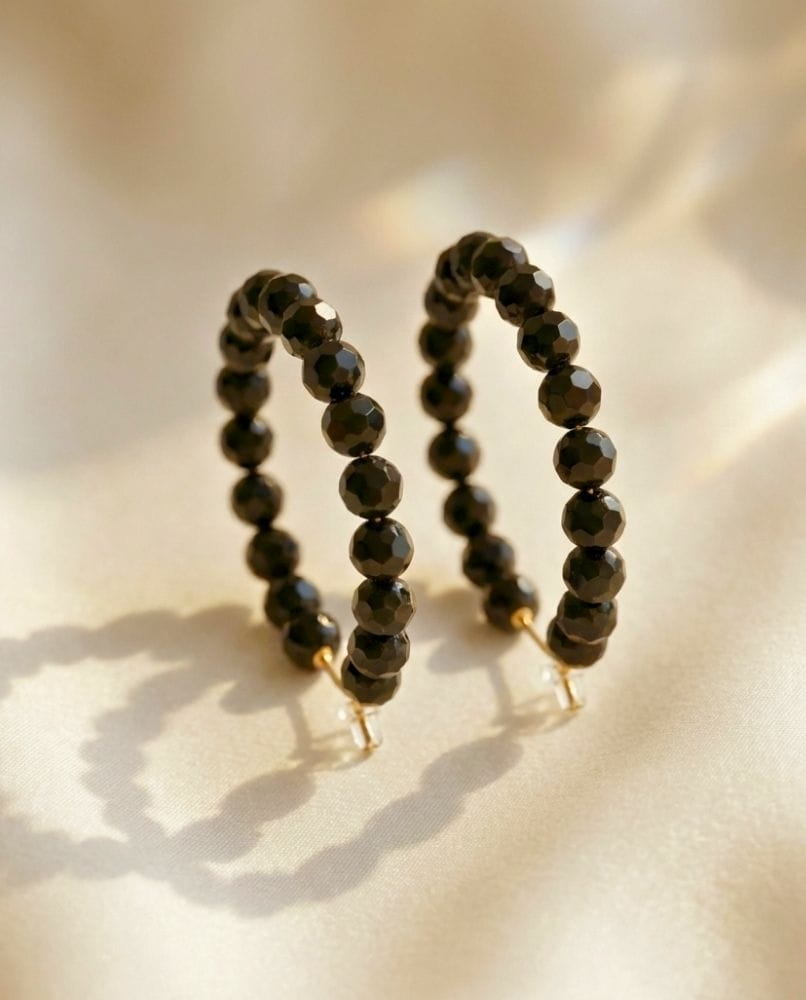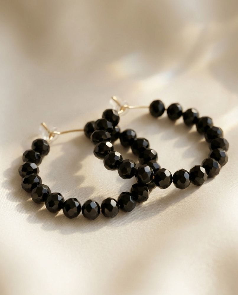 Czy szukasz biżuterii, która stanie się Twoją „kropką nad i”? Poznaj kolczyki od Nativesy – połączenie głębokiej, tajemniczej czerni fasetowanych koralików z luksusowym wykończeniem. To nie jest zwykły dodatek. To Twoja nowa pewność siebie, zamknięta w idealnym kształcie koła.