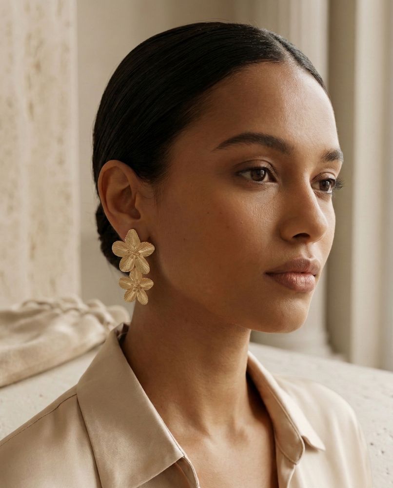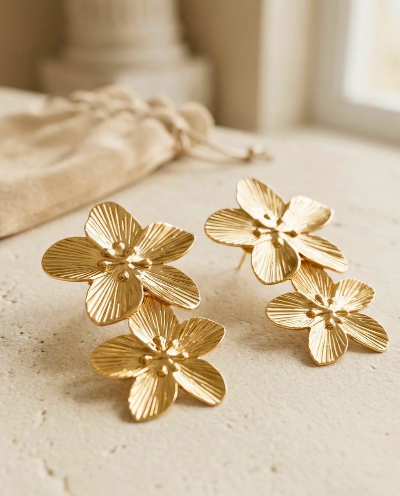 Te kolczyki to coś więcej niż biżuteria. To kaskadowe arcydzieło stworzone, aby podkreślić Twoją wyjątkowość. Zainspirowane kunsztownymi, organicznymi formami, te kolczyki są ucieleśnieniem naturalnej pewności siebie. Każdy z ich połączonych kwiatów – od większego u nasady do mniejszego na dole.