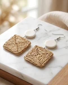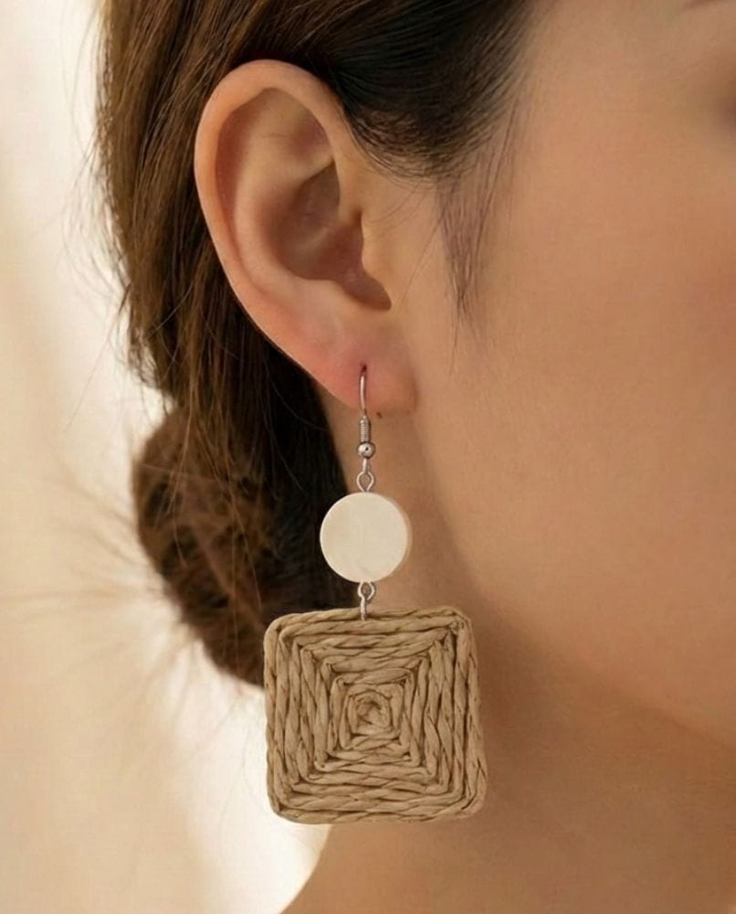 "Rattanowe kolczyki to absolutny must-have tego sezonu, ale model Ethereal Square wyróżnia się geometryczną formą, która przełamuje klasyczny styl etno. Aby uzyskać efekt 'wow', upnij włosy w luźny kok lub gładki kucyk – pozwól kolczykom grać główną rolę.