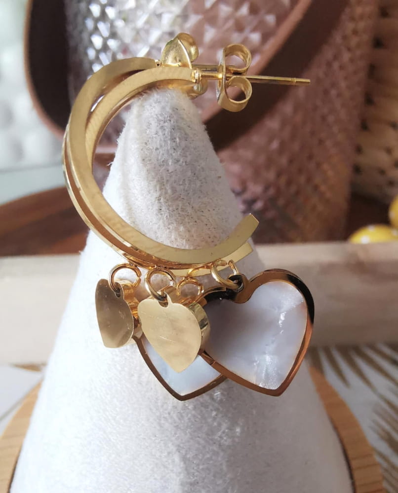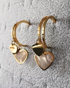 - Uniwersalny Design: Delikatne kółka z zawieszkami w kształcie serc – jednego mniejszego, gładkiego, i drugiego większego, z perłowym wypełnieniem – tworzą uroczą i elegancką kompozycję. Idealnie pasują zarówno do codziennych, casualowych zestawień, jak i do bardziej formalnych stylizacji, dodając im subtelnego, romantycznego akcentu.