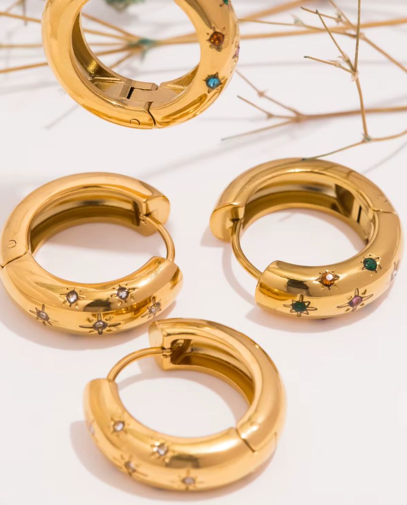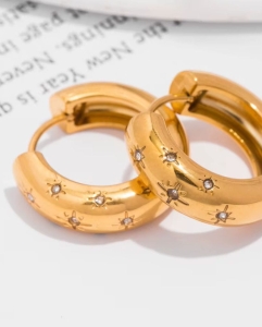 Odkryj biżuterię, która przyciąga spojrzenia i dodaje pewności siebie. Te zjawiskowe kolczyki wykonane są z wysokogatunkowej stali szlachetnej, pokrytej 18-karatowym złotem, a ich centralnym punktem są lśniące górskie kryształy – symbole czystości i wewnętrznego światła.