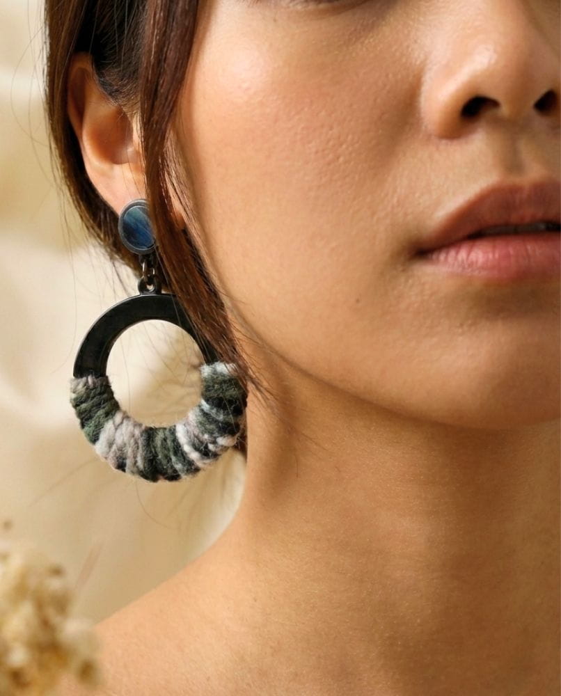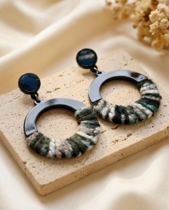 Uniwersalna paleta barw: Odcienie szarości, leśnej zieleni i grafitu w splotach sprawiają, że kolczyki pasują niemal do wszystkiego.