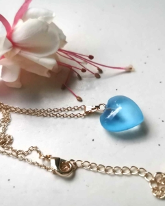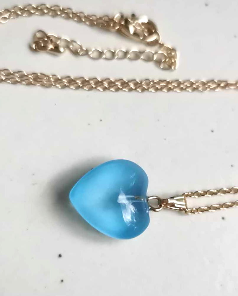 Naszyjnik ze stali szlachetnej, z pięknym sercem z żywicy.