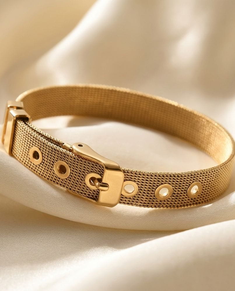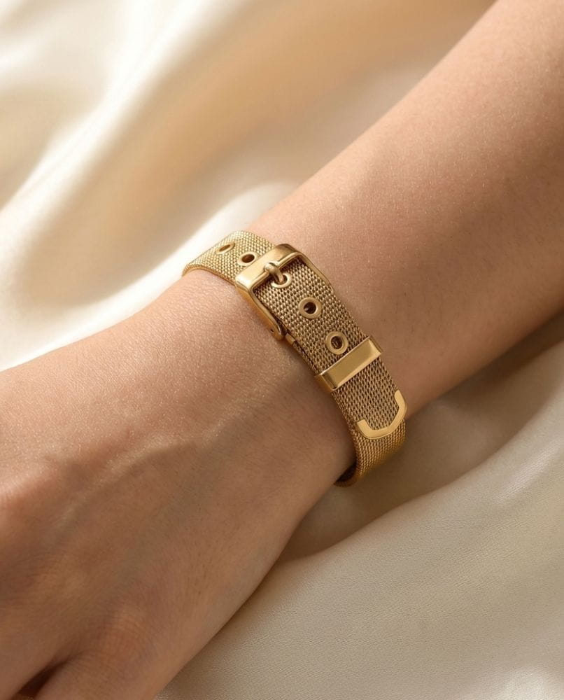 Elegancja, która dopasowuje się do Ciebie. Pozłacana Bransoletka Mesh „Buckle Gold”