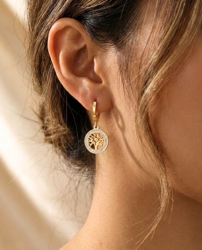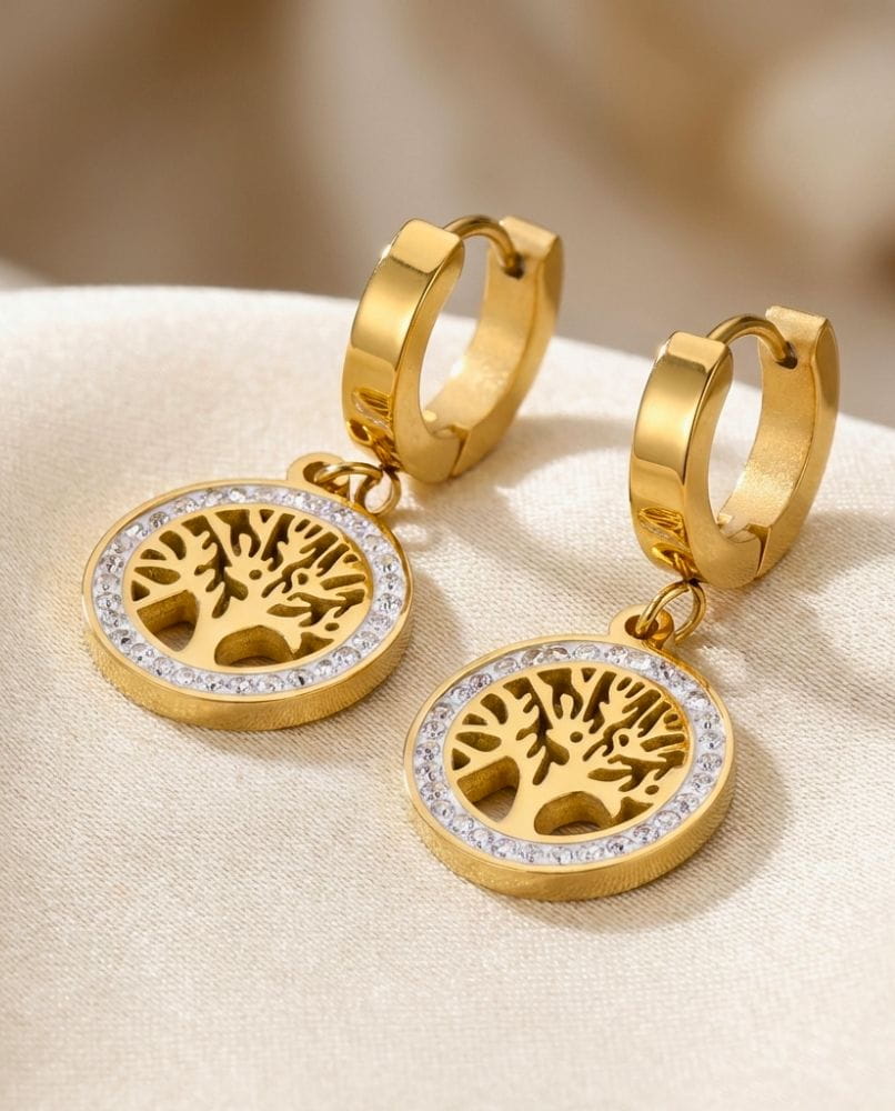 Blask, który niesie znaczenie – Kolczyki „Drzewo Życia” Pozłacane 18-karatowym Złotem