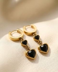 Olśniewający Kontrast: Głęboka, tajemnicza czerń serc oprawiona w lśniące złoto to połączenie, które nigdy nie wychodzi z mody. Te kolczyki przyciągają spojrzenia i dodają twarzy blasku, podkreślając Twoją pewność siebie.