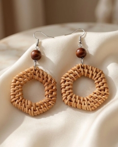 Ręcznie Plecione Kolczyki Rattanowe Hexagon – Poczuj Lekkość Naturalnego Piękna