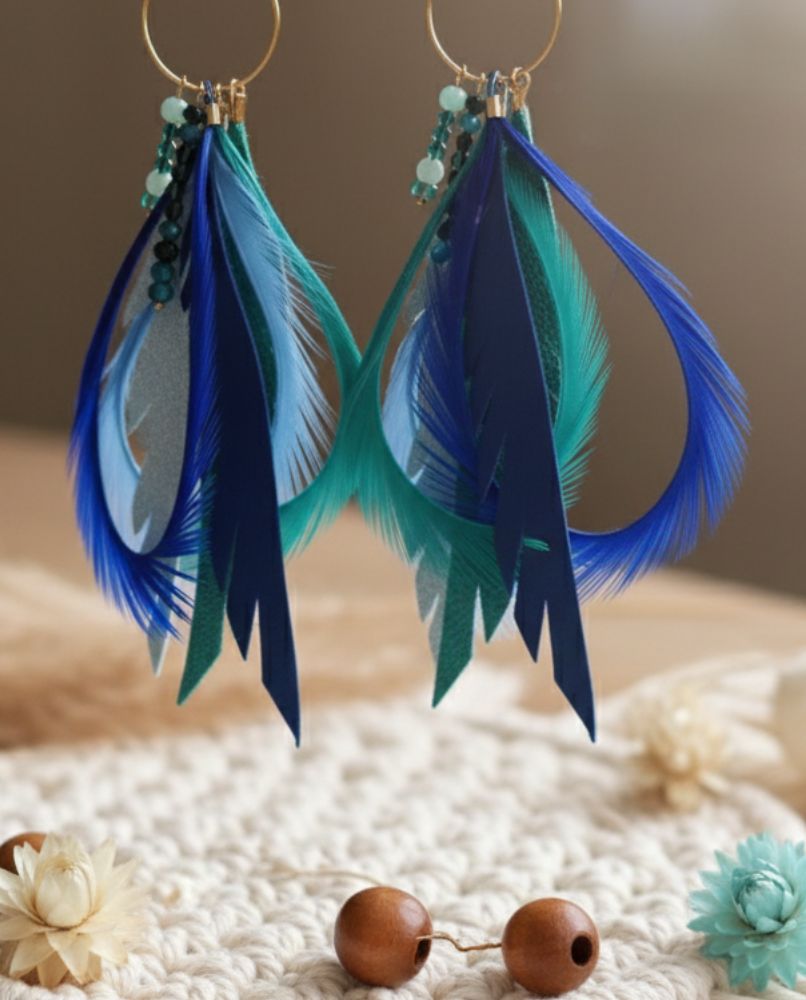 Kolczyki Premium Handmade z naturalnych piór i włoskiej skóry – unikatowa lekkość i styl