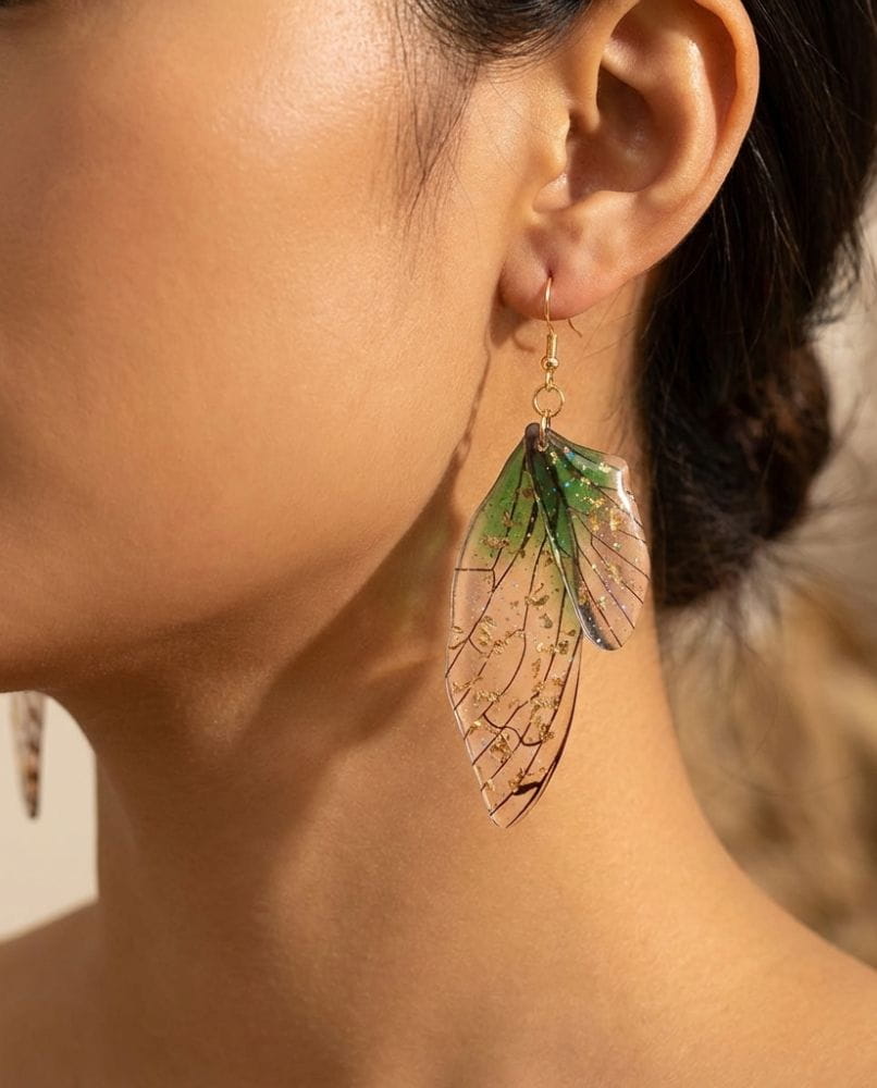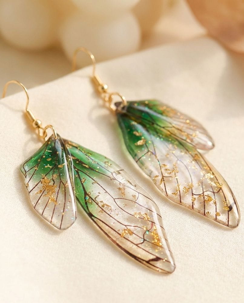 Zaczaruj Spojrzenia: Kolczyki Skrzydła – Zielona Magia i Złoty Blask